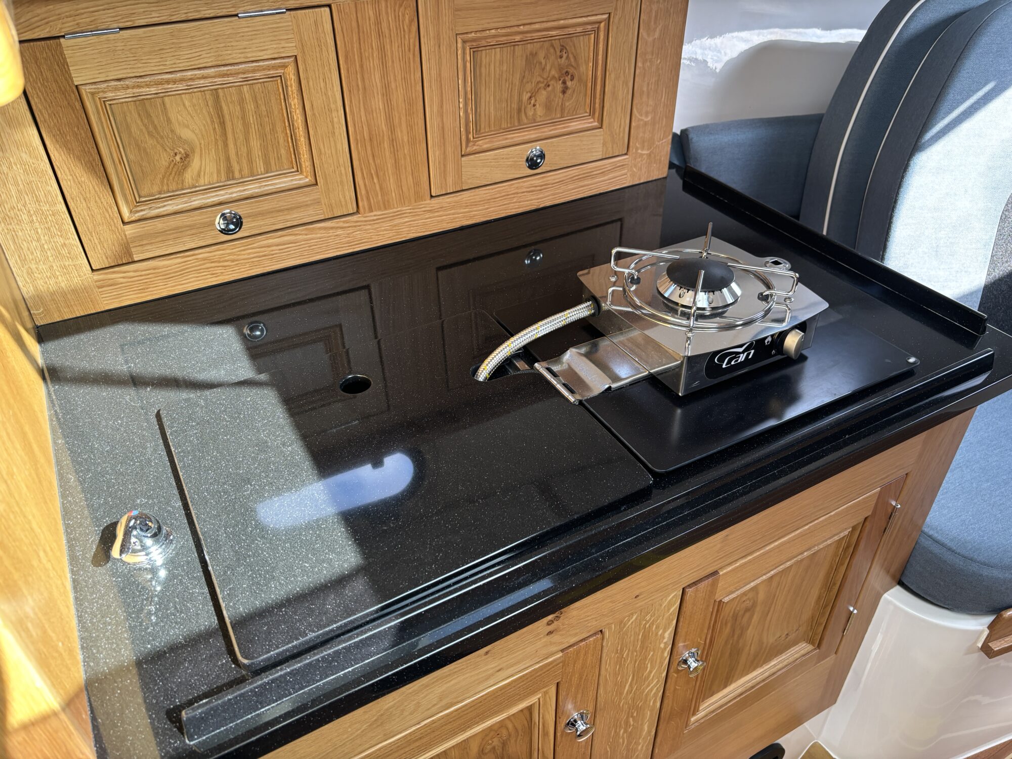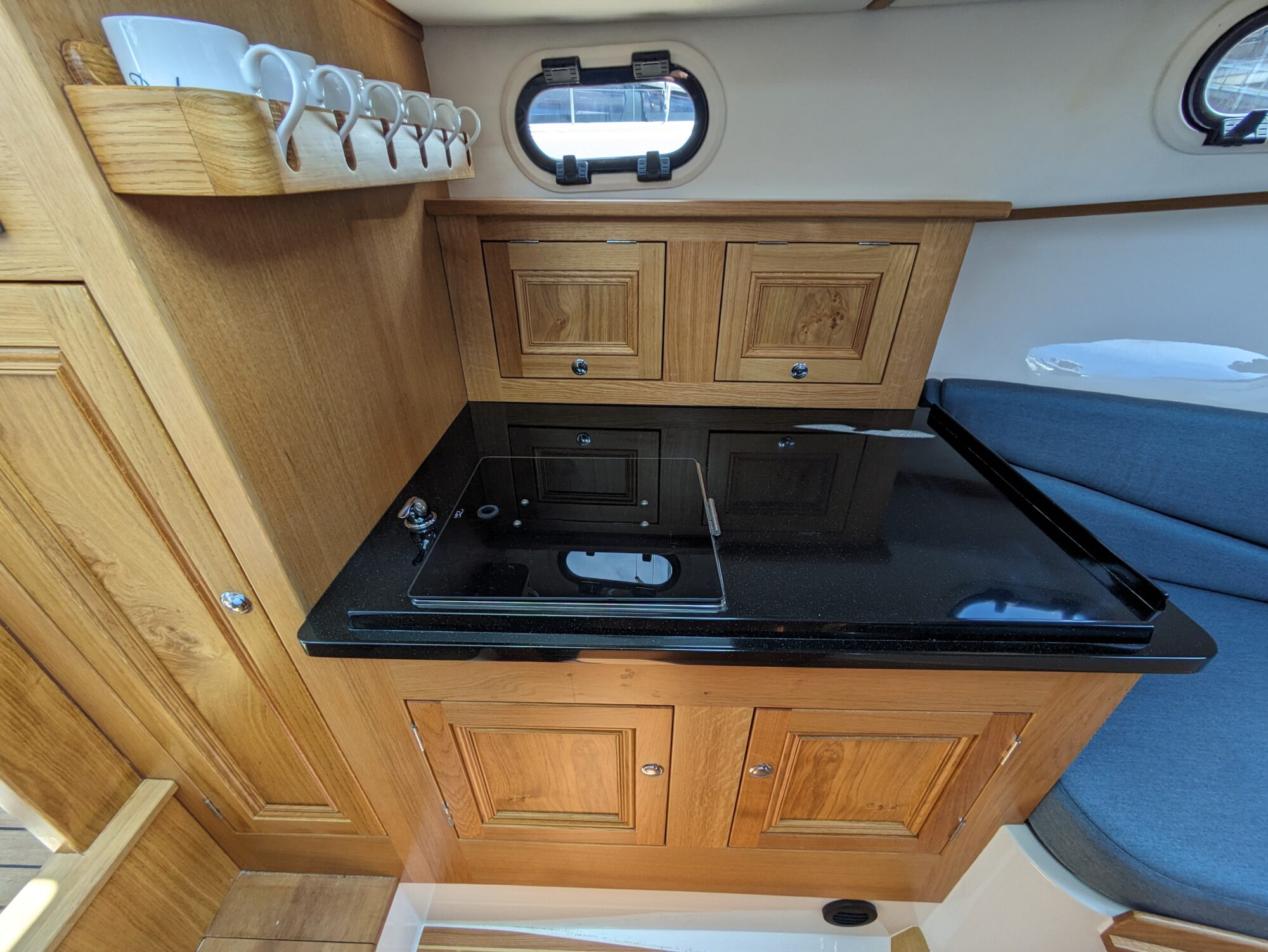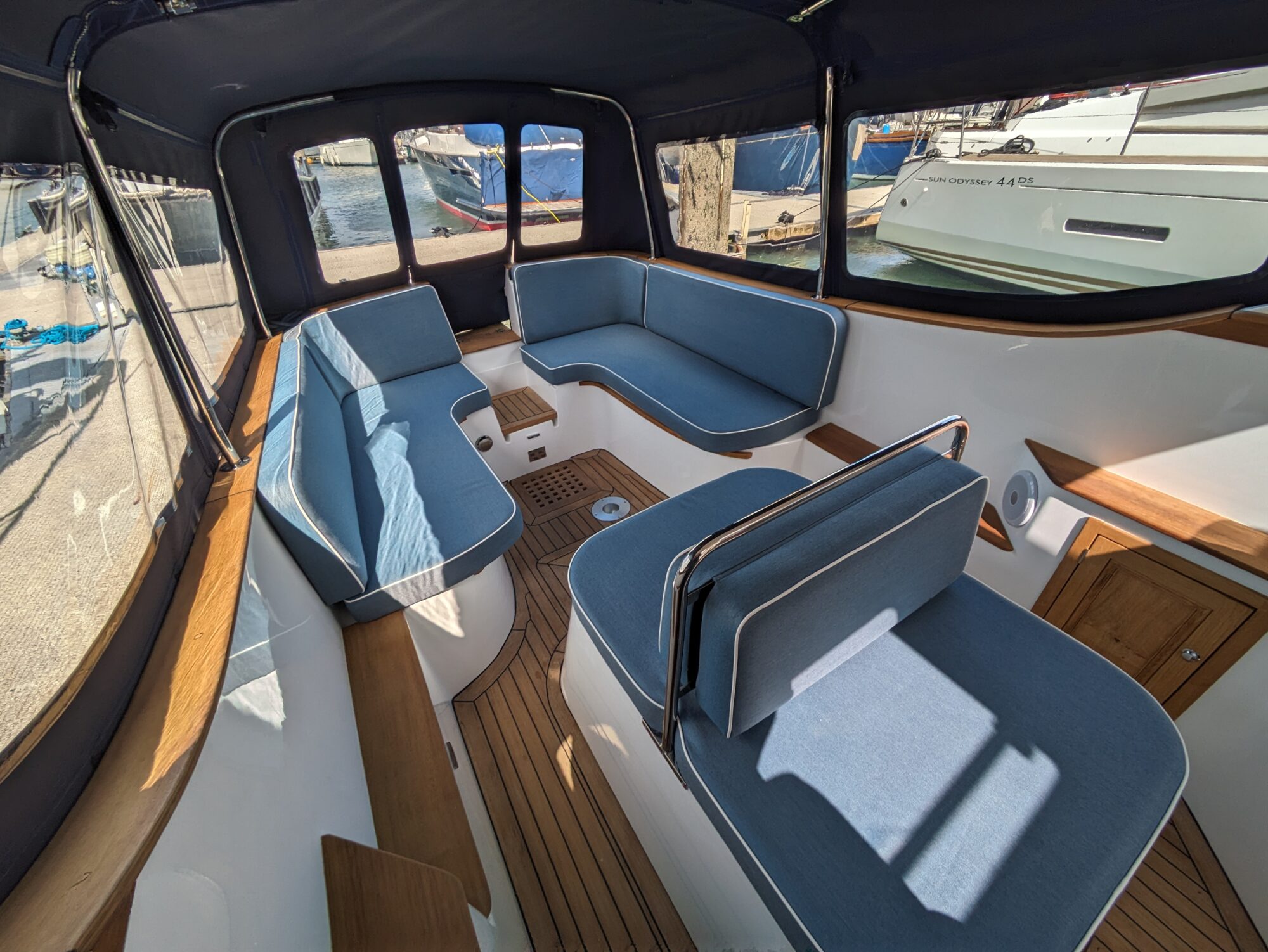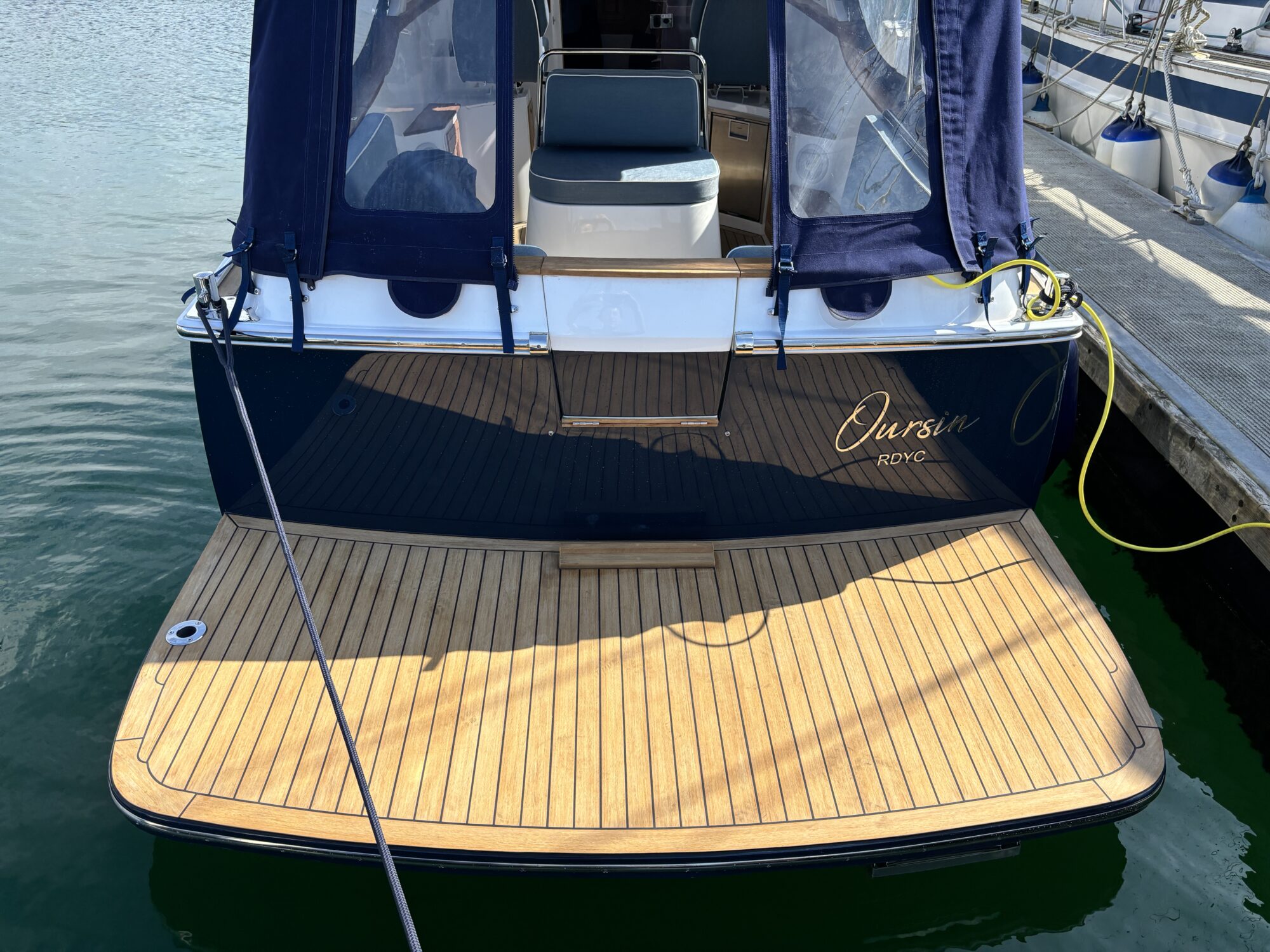 She is a unique Duchy 27 being the only hull to feature an extended bathing platform and additional boarding handle for safety, along with a two-part removal cover which can be used as a sun shade.